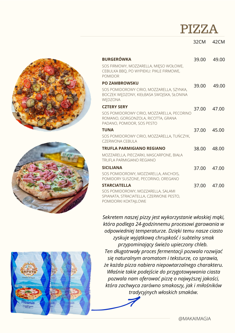Zapraszamy do Mąki i Magii - miejscowego rajdu dla podniebienia. Nasza restauracja oferuje pyszne obiady domowe oraz prawdziwą włoską pizzę. Potrafimy również zadbać o Państwa wyjątkowe okazje w naszej sali weselnej i zapewnić niezapomniany catering na dowolne wydarzenie. Jeśli potrzebujesz również wygodnego noclegu, nasz przytulny hotel jest do Twojej dyspozycji. Dołącz do nas i pozwól Mące i Magii zafascynować Cię niezwykłymi smakami i magiczną atmosferą.